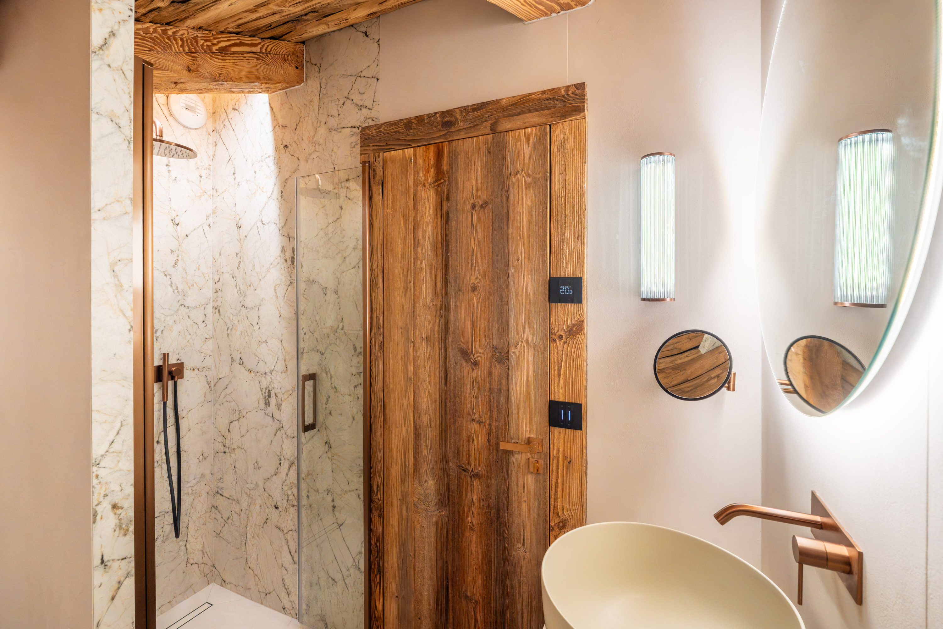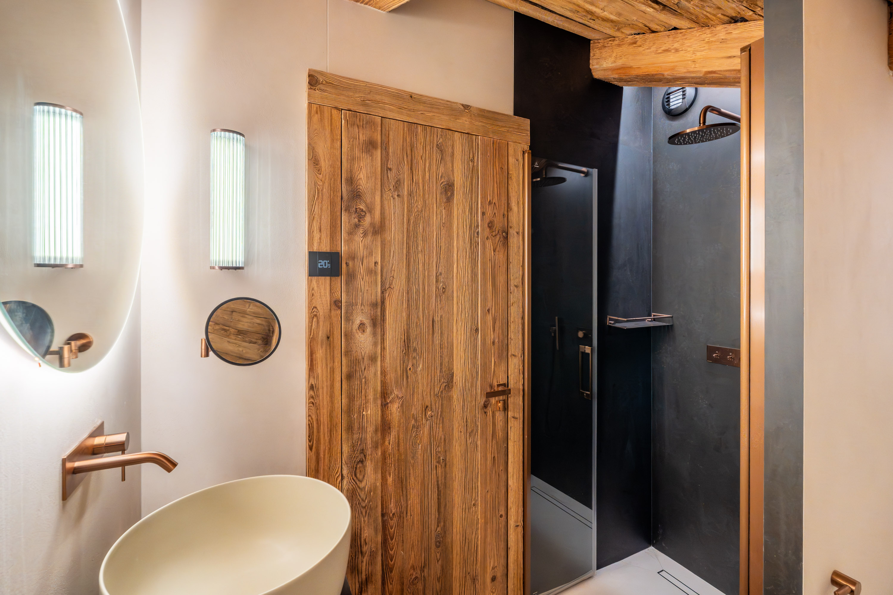 En plus de la piscine privée et du sauna, vous découvrirez un espace hammam dédié à la relaxation, où chaleur et vapeur apaisent vos muscles après une journée active. Pour compléter votre expérience bien-être, une fontaine à glace est à votre disposition, offrant une immersion revigorante pour stimuler votre circulation et intensifier la sensation de détente. Un véritable sanctuaire de bien-être, conçu pour vous offrir un moment de relaxation total dans un cadre luxueux et raffiné.