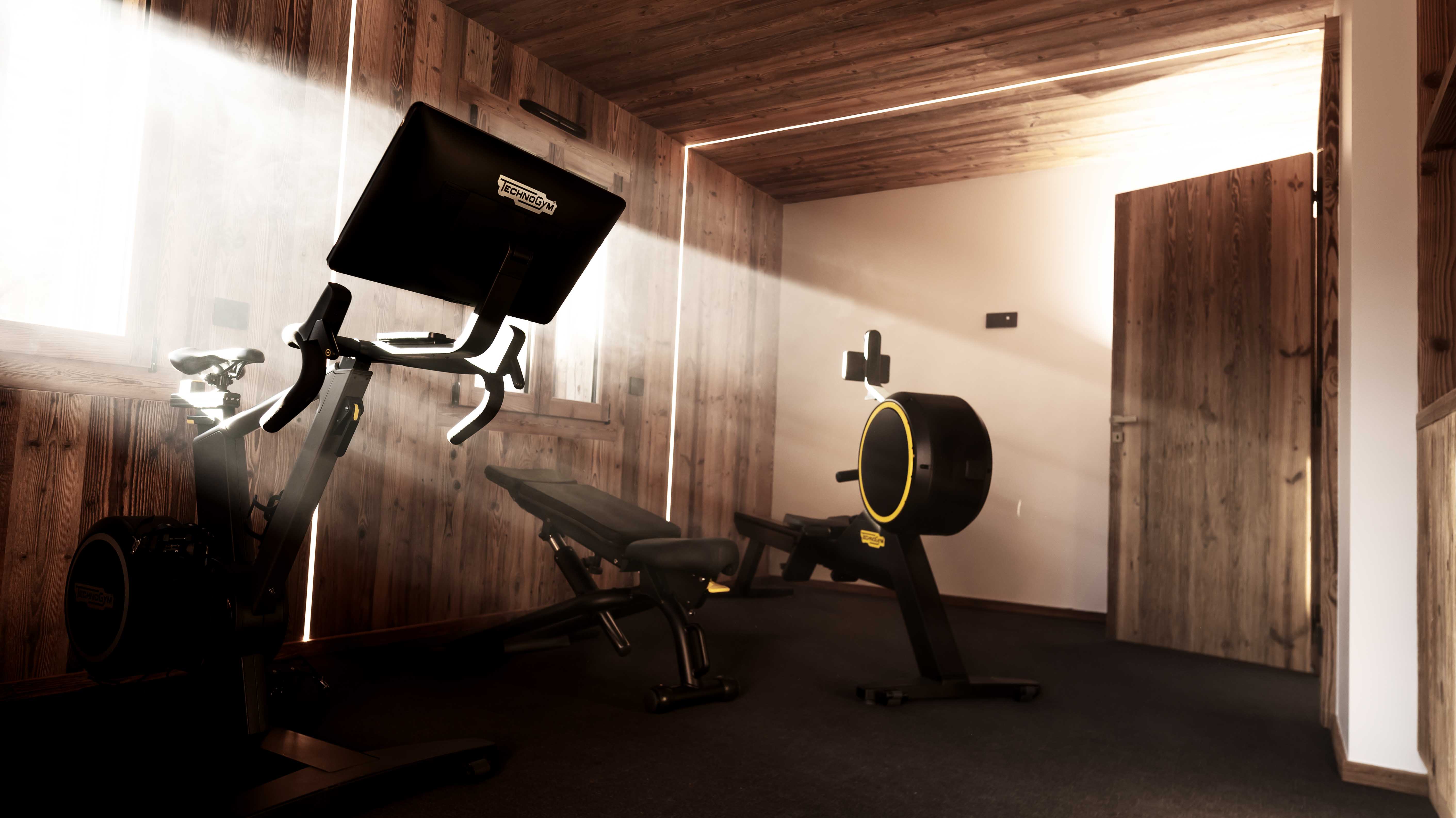 Notre salle de sport de 20 m², située dans le chalet, est équipée de tout le nécessaire pour maintenir votre routine fitness durant votre séjour. Vous y trouverez un rameur, un tapis de course, un vélo, ainsi que du matériel de musculation pour un entraînement complet. Un écran, pouvant également servir de télévision, est à votre disposition pour suivre des cours en ligne, des programmes personnalisés ou vous détendre avec vos émissions préférées. De plus, vous avez la possibilité de faire appel à des prestataires extérieurs tels que des coachs sportifs ou des professeurs de pilates pour des sessions sur mesure, dans un cadre privé et confortable.