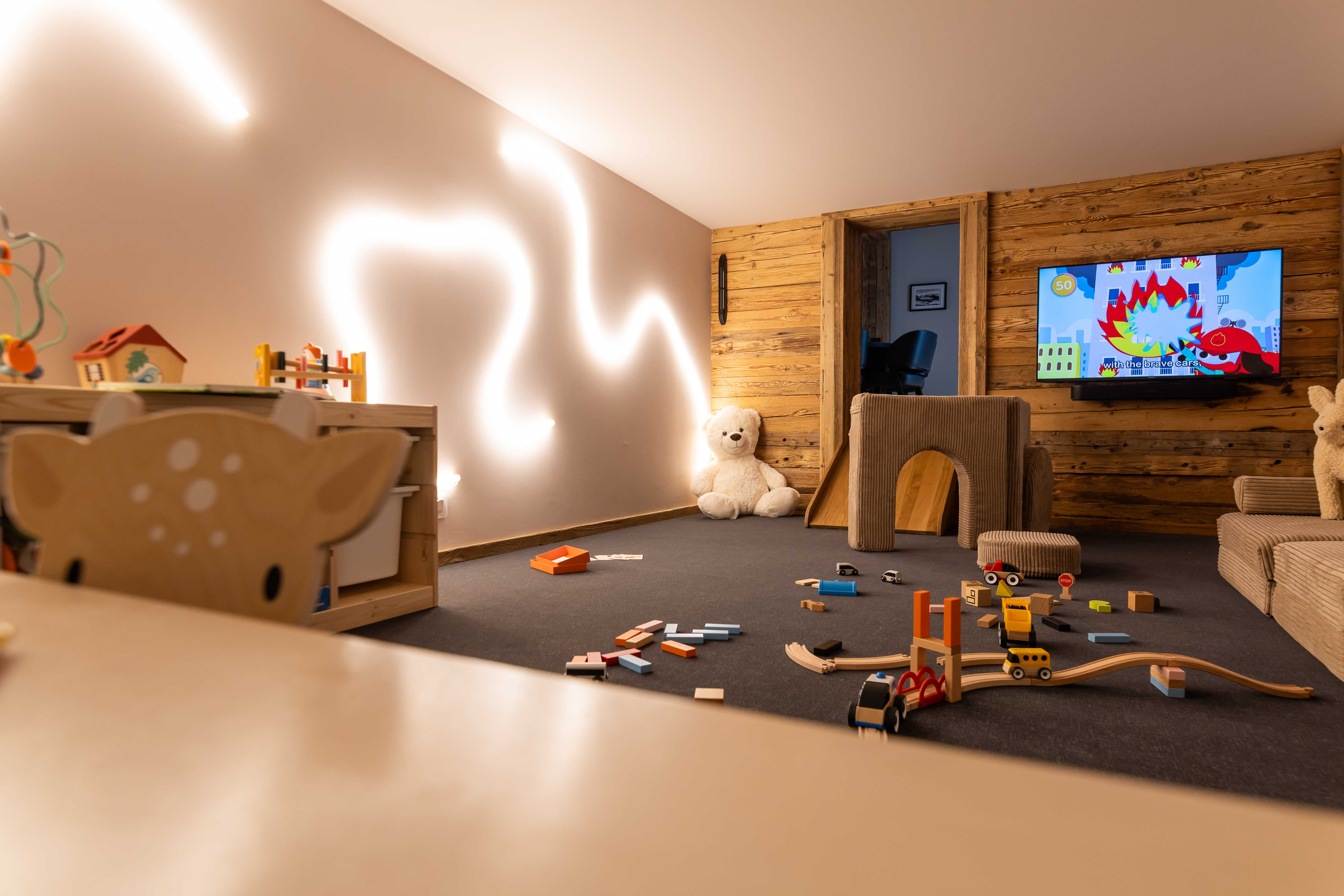 Pour les passionnés de divertissement, une télévision avec console de jeux est à votre disposition, tandis qu’une table de dessin inspire la créativité des plus jeunes. Le tout est agrémenté d’une entrée secrète, ajoutant une touche d’aventure et de mystère à cet espace unique. Un véritable cocon ludique où chacun trouvera son bonheur.