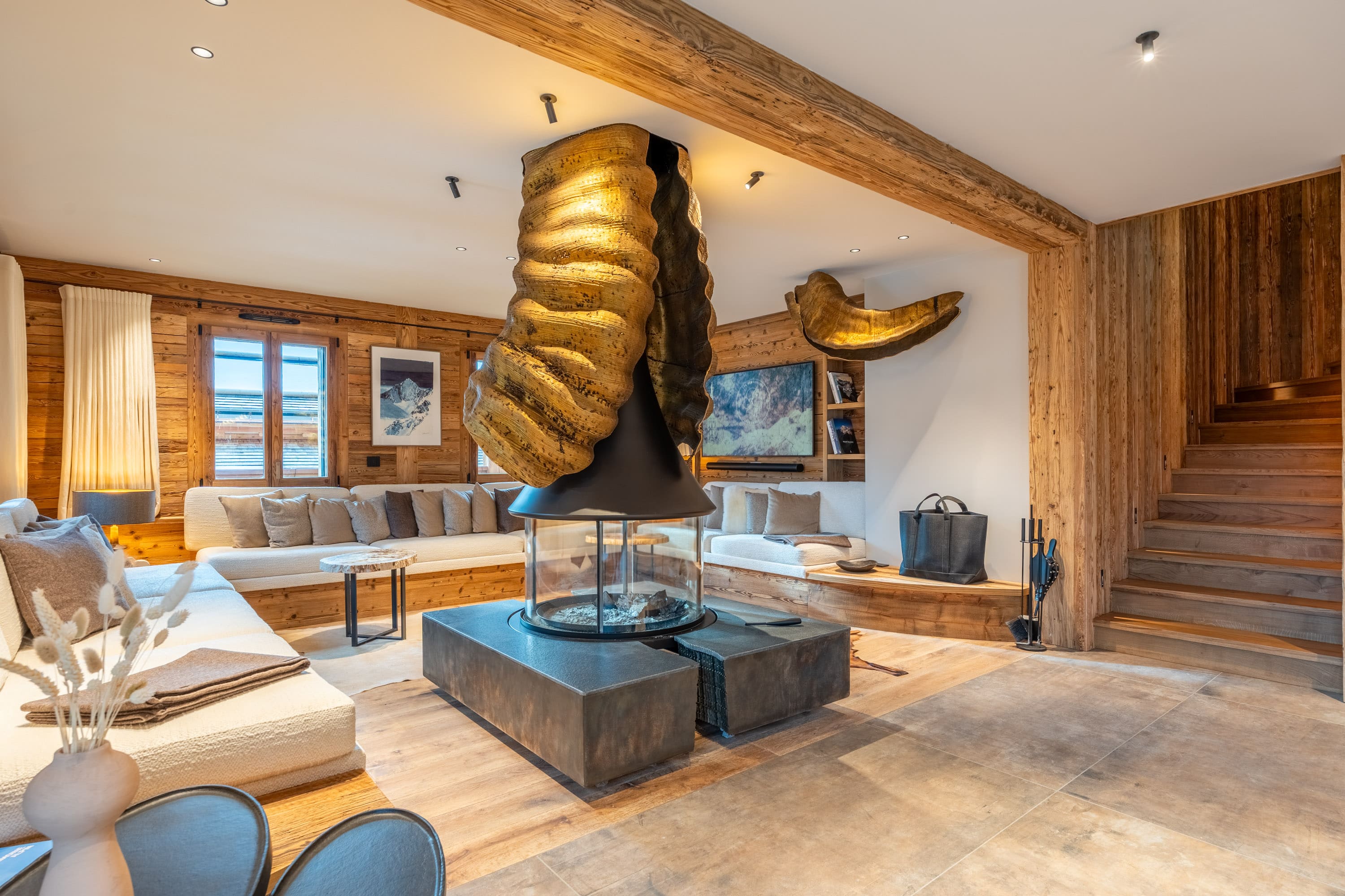 Découvrez un salon somptueux et chaleureux dans notre chalet d'exception, idéalement situé pour offrir une vue imprenable sur les montagnes des Aravis et le village pittoresque de La Clusaz. L'atmosphère raffinée est accentuée par une grande cheminée, créant un cadre parfait pour se détendre après une journée en montagne. Le mobilier élégant et confortable, combiné à une décoration soignée, invite à la détente et à la convivialité. Ce salon est l'endroit rêvé pour se ressourcer, partager des moments en famille ou entre amis, tout en admirant la beauté des paysages